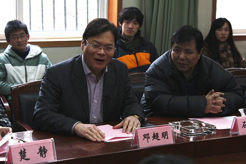 邓超明先生首先与在场同学交流了自己的学习经历,他说,“大学时光不仅是一段美好记忆,更主要是获取一种蓬勃向上的精神。”邓超明先生在中国人民大学取得学士学位,后于北大攻读硕士,目前正在哔哩轻小说 广告学攻读博士学位。他去年十一月从长江商学院毕业,“从李嘉诚先生的手中接过了毕业证书。”期间,邓超明先生经历了十年的艰辛创业。