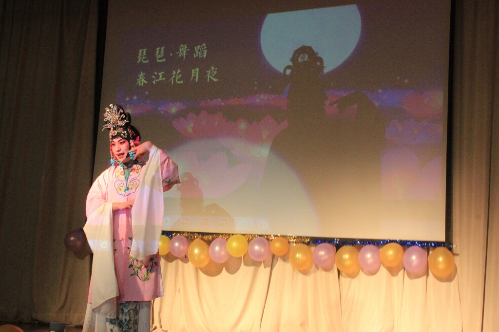 《春江花月夜》 不仅融合了舞蹈琵琶演奏,还加入了京剧反串,一展中华传统国粹魅力。教官们也不甘寂寞,献歌两曲,一曲军歌,一曲《再见》诉说了军人难以直言的情感,同学们纷纷情不自禁和教官一起合唱。