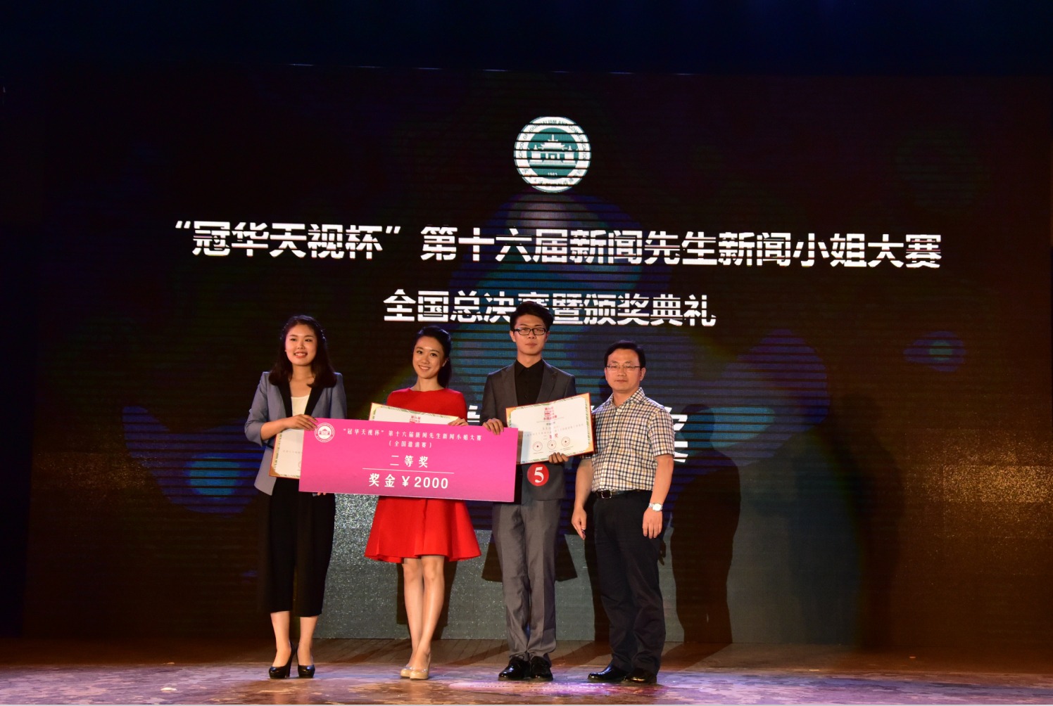 的张宁与来自华中科技大学的陈艺获得全国总决赛的一等奖,成为本届新新大赛的“新闻先生”和“新闻小姐”。