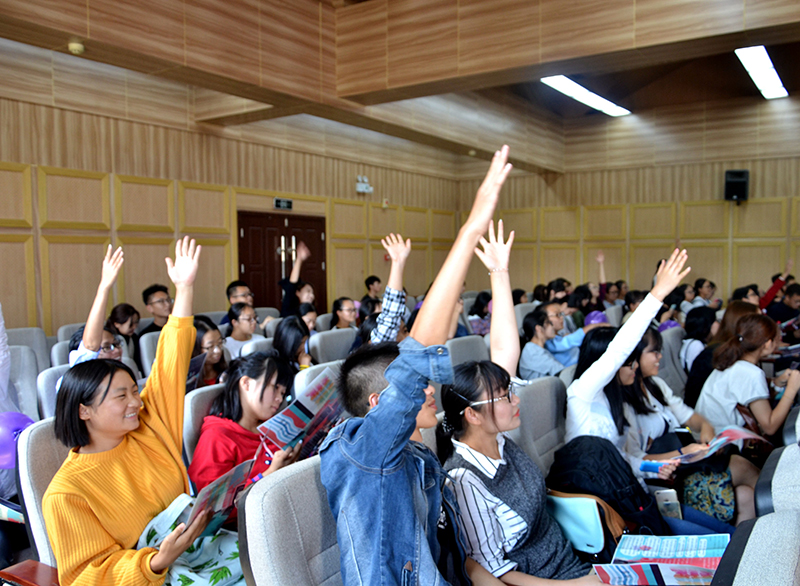 看过《火锅英雄》没有?我就那个18中出来的重庆人。”带着重庆人的直率,16级辅导员刘思维老师站在台下说起了自己的18岁。“那时成年的生日也不过是和妈妈在食堂一起吃了顿饭。”现在刚当妈妈不久的她,曾经也同样是活泼俏皮才华横溢的姑娘,一路走来,她以过来人的经验告诉大家,“希望你们在用于承担责任的前提下,能够自由地度过你们的大学四年。”
