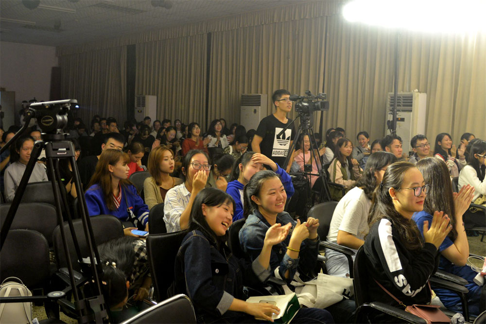 由王晴晴、 杜昱薇等同学带来的方言朗诵《雨巷》,文雅美妙的音乐和极富乡土气息的方言实现巧妙契合,再加上手握一把油纸伞,身着碎花印和服的潘汶奇同学的忘我表演,众人无一不捧腹大笑、乐开了花。