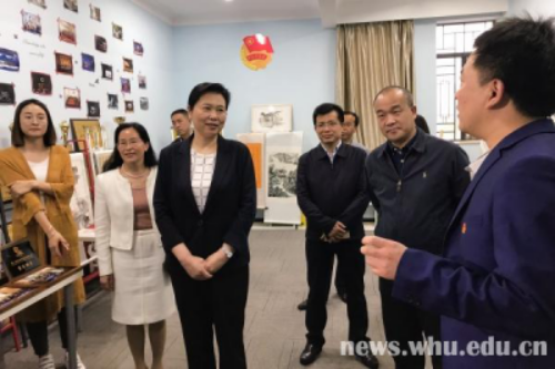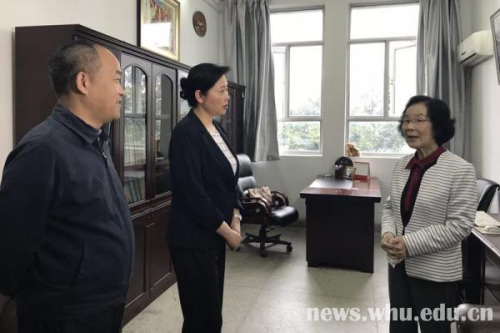 在化学与分子科学学院天然高分子与高分子物理实验室,张俐娜院士介绍了实验室建设有关情况。王艳玲对这些“绿色”化学创新成果十分感兴趣,认为不仅具有较高学术水平,而且契合国家可持续发展战略,希望能够将这些成果运用于长江经济带发展。