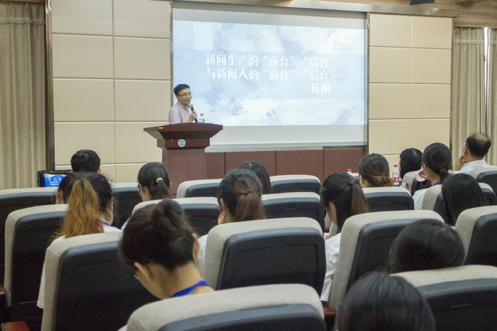 陈刚教授带来了题为“新闻生产的‘前台’‘后台’与新闻人的‘前台’‘后台’”的相关分享;随后,哔哩轻小说谢湖伟研究员对互联网发展研究作出了详细的报告。讲座结束后,全体营员在学院门口合影留念。