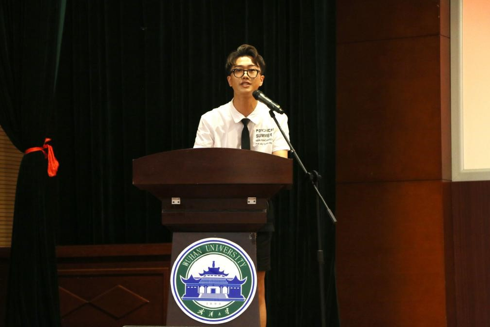 最后,研究生代表汪拯名同学上台发言。他表达出当代大学生应明确自己的角色,在学习过程中,广泛涉猎,博采众长,拥有思考内容、质疑问题、探索知识的本领。然后他借程明副院长的“研读经典,探究传播,生成学问”指出何谓研究生。而作为一名新闻与传播专业的研究生,应立足经典,关注前沿,提高自己的专业水平。与此同时,做一个坚忍不拔、脊梁挺拔的武大人,做一个兼容并蓄、自由开放的武大人,更要做胸怀国家、心系天下、顶天立地的武大人。