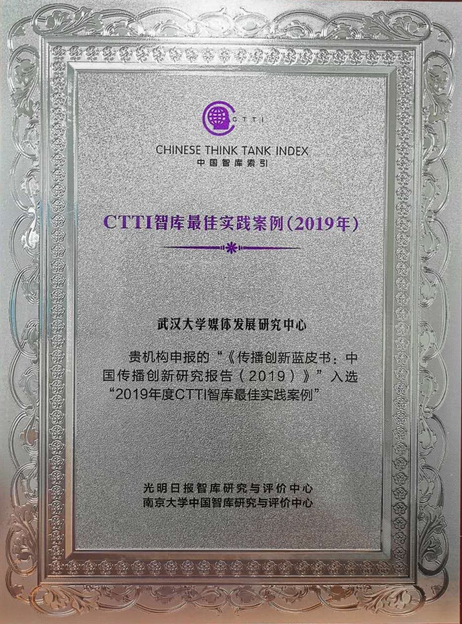 图4:《传播创新蓝皮书:中国传播创新研究报告2019》获奖证书