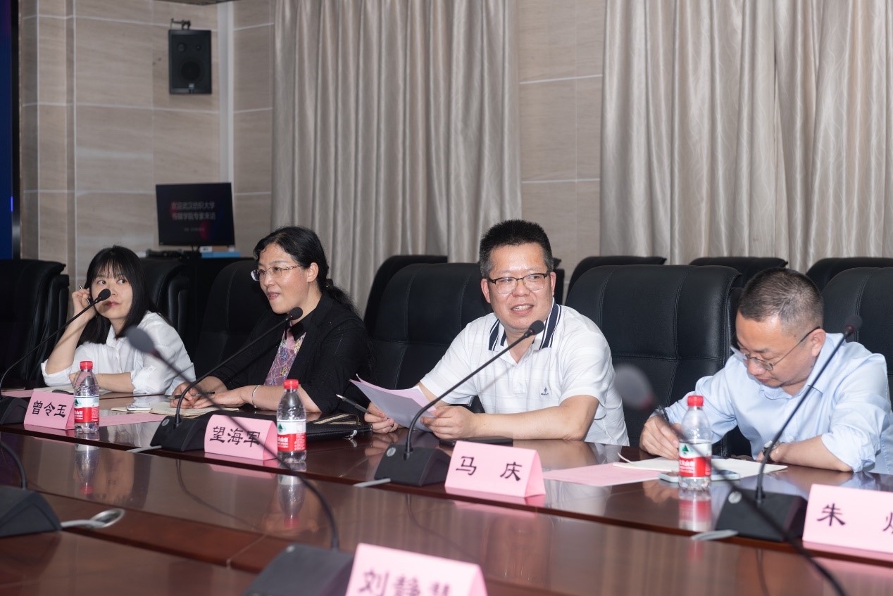 (学院党委书记李玉龙、院长强月新教授和副院长洪杰文教授参加会谈)