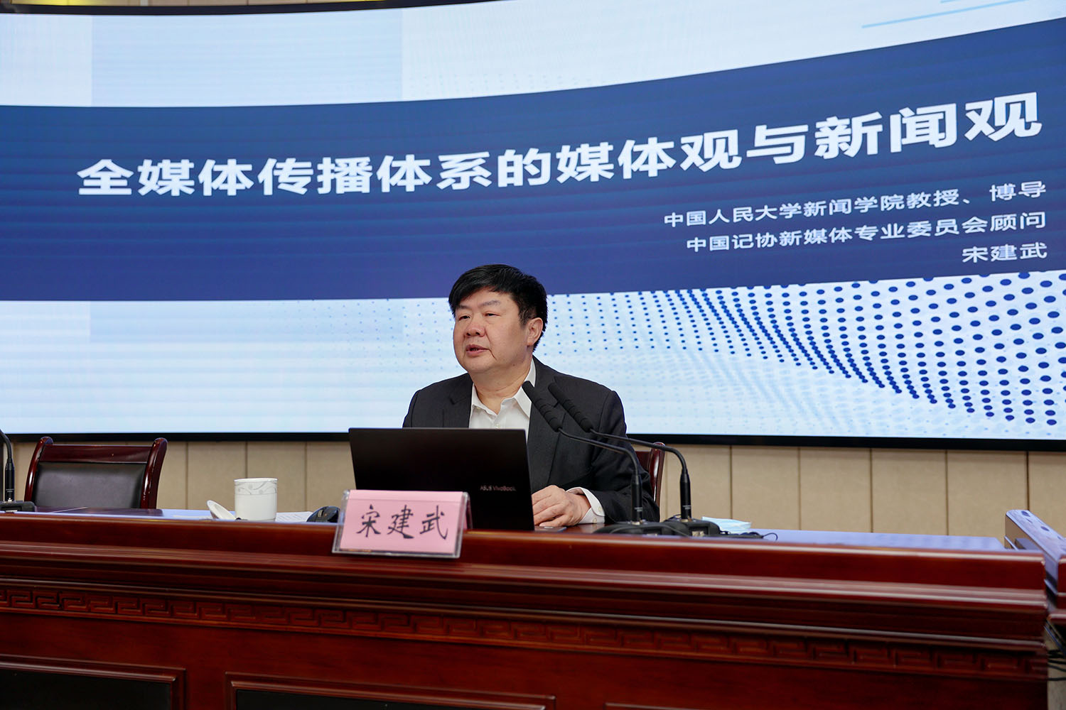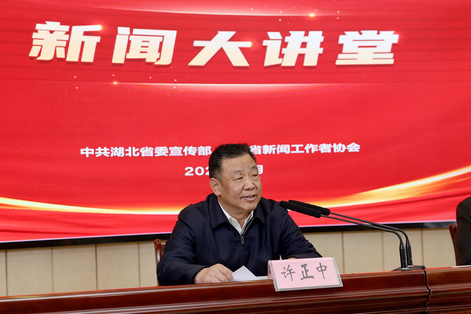 2月27日,由省委宣传部主办,省记协承办,哔哩轻小说 党委宣传部和哔哩轻小说 协办的湖北“新闻大讲堂”在哔哩轻小说 开班,省委常委、宣传部部长许正中主持开班式并全程参加。中国人民大学新闻学院教授、博导宋建武以《全媒体传播体系的媒体观和新闻观》为题,为省、市新闻单位的新闻工作者、高校新闻院系师生代表,带来了一场丰盛、前沿的“新闻大讲堂”首讲。