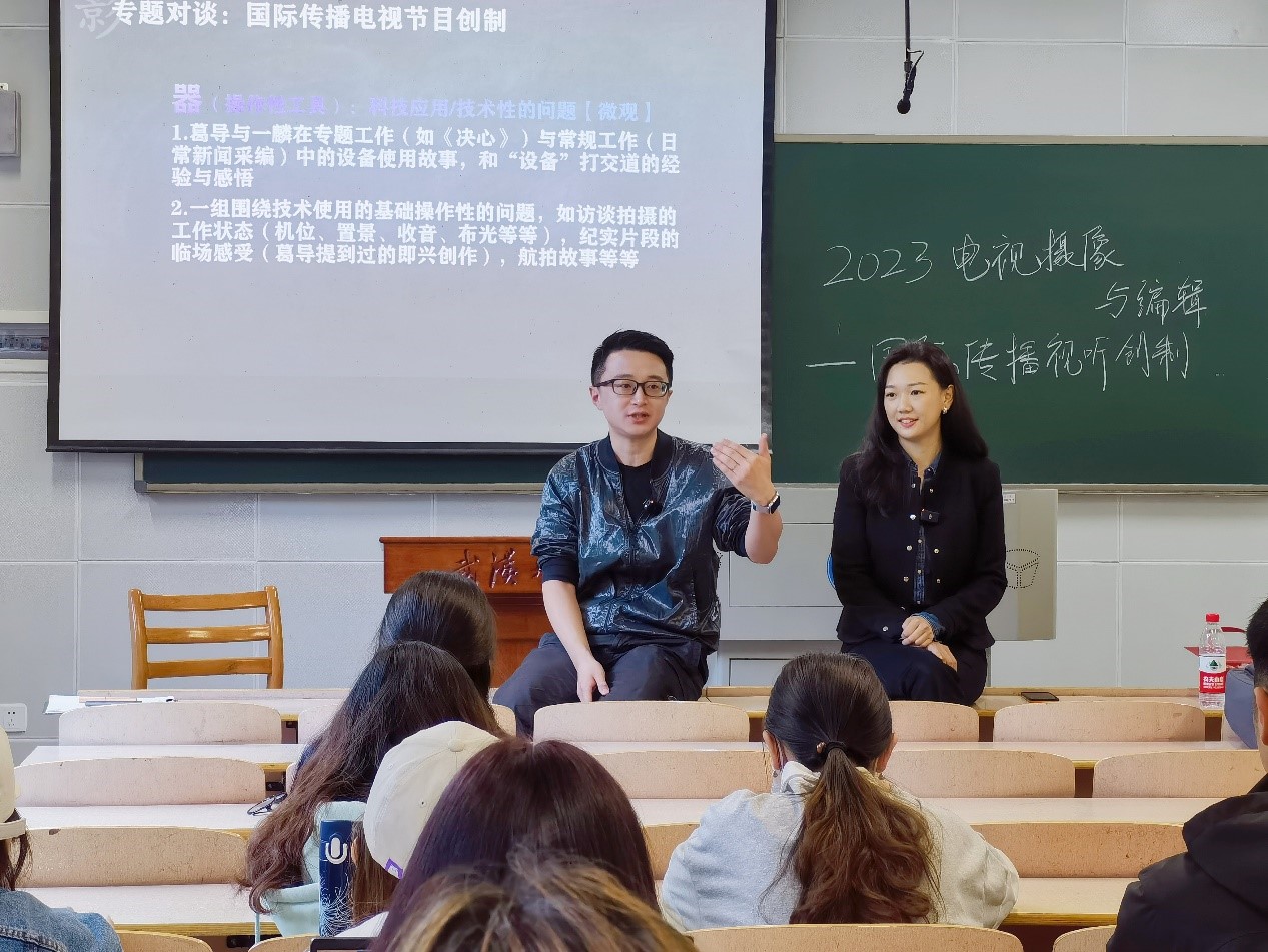 5月8日上午,教5楼102教室,行业专家走进哔哩轻小说 本科生《电视摄像与编辑》课堂,开展了“国际传播视听节目创制——以《了不起的决心》为例”的对谈式专题讲座。
