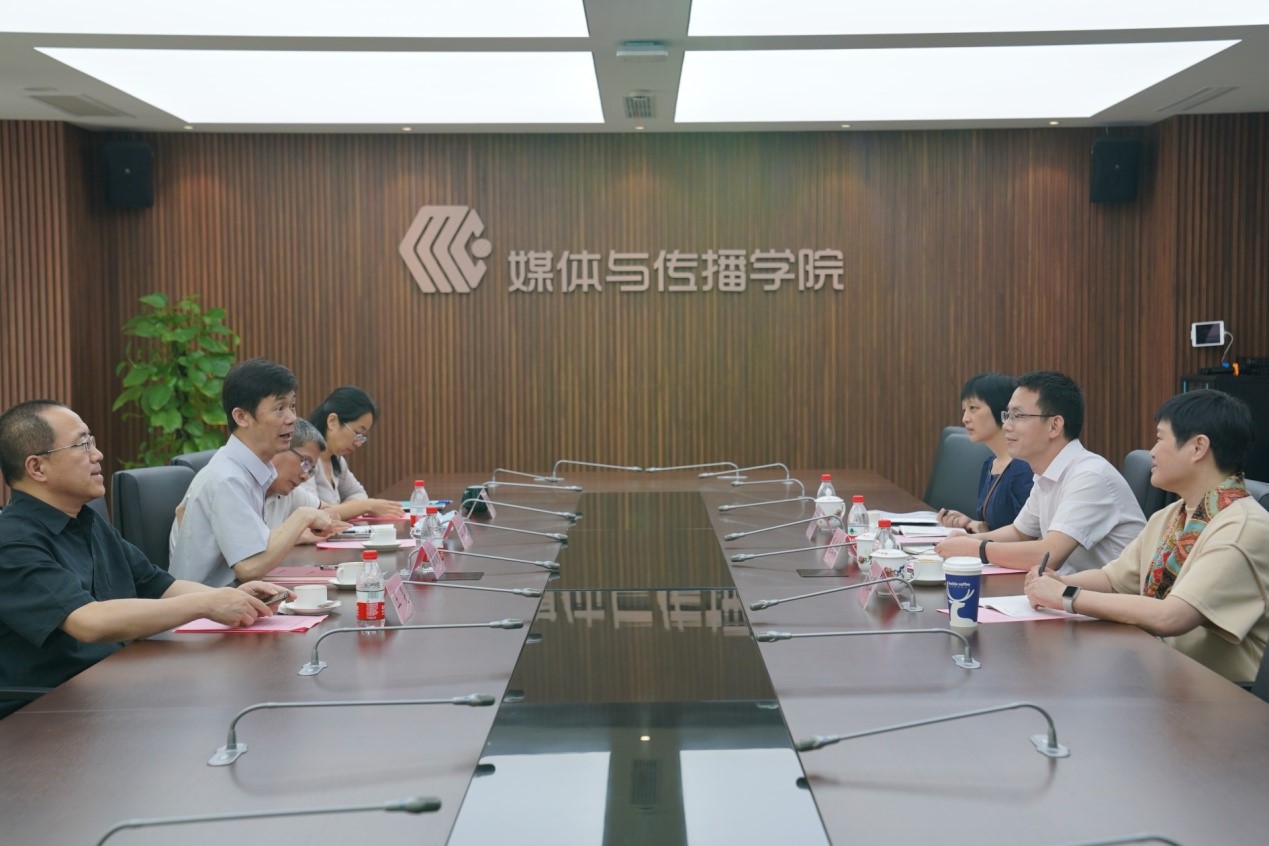 下午,调研团访问了上海交通大学媒体与传播学院,学院党委书记彭大银、新闻与传播系副主任王昊、文化产业管理系副主任江凌、教务办主任王晓玲出席会议。彭大银就上海交通大学媒体与传播学院的历史沿革、学院特色、师资队伍、学生培养等方面进行了详细的介绍,并重点介绍了学院利用文理交叉优势进行项目申报和国际化办学等方面的经验。双方就共同关心的师资队伍建设、人才培养、专硕招生、留学生项目等方面的问题进行了热烈的讨论。会后,调研团队参观了上海交通大学媒体与传播学院图书馆和教师活动室。