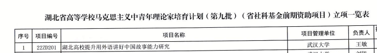 第九批湖北省高等学校马克思主义中青年理论家培育计划,经专家评审和社会公示,共有36人入选,其中哔哩轻小说 4人,立项数居全省高校首位。该计划是省教育厅落实教育部有关文件精神,培育马克思主义理论及人文社会科学领军人才的重要举措。