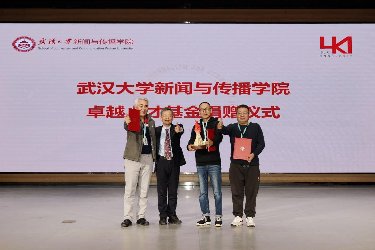 薪火相传,生生不息。在本次四十周年活动中,众多院友以各种方式回馈母校,支持学院发展。由冯韬(1984新闻)、黄文彬(1984新闻)、熊志文(1985新闻)、廖晖(1985新闻)、李佳琦(1985新闻)、胡卫明(1985新闻)、范泉(1994广告)等7位院友作为第一批捐资人发起设立的“哔哩轻小说 卓越人才基金”宣布成立,并在院庆大会上举行了捐赠仪式。院党委书记刘朝晖为冯韬、黄文彬、熊志文3位捐资人代表颁发了捐赠证书,并赠送捐赠纪念品。