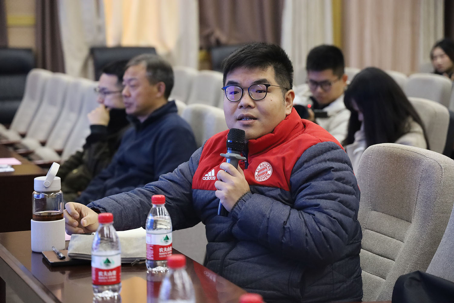 展映会从14:00持续至19:30,精彩纷呈,掌声时时响起。本次展映会的主题是“‘壹’露曦光”,旨在展现同学们在创作过程中所理解的思想之光、情感之光和人格之光。《轮世间》《微光》《红巷守艺人》《楚韵新声》《住在码头上的人》《上岸》,这6部作品生动刻画了打工人、匠人、汉派相声艺人、武汉码头工人、考研学生等普通人的日常生活世界,用精妙的视听语言阐述日常生活的意义来源于对某事长期的执着与专注,作品中闪烁着思想之光。《一路顺风》《丢丢》《时光曲》《留言》《少年游》《第39个冬日》,上述6部作品生动表现了跨国友情、关爱流浪动物、祖孙情、自我疗愈等情感,折射出温暖人心的情感之光。《玻璃丝》讲述的是赵梓森院士研制光纤通信技术过程中的一些感人事迹,展现了赵梓森院士的人格光芒。
