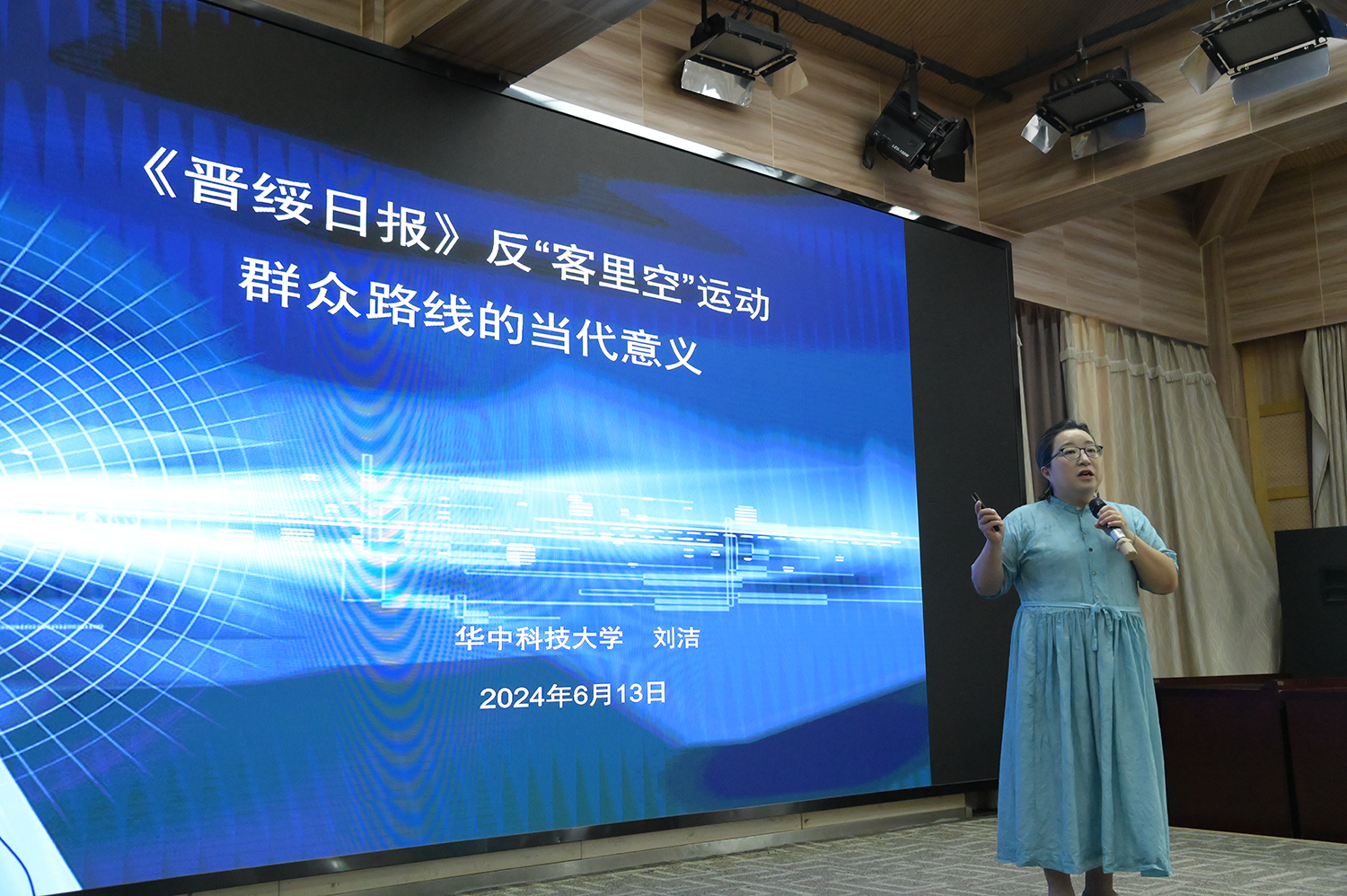 6月13日下午14:30,华中科技大学新闻与信息传播学院刘洁教授做客2024年第2期“马克思主义新闻观大讲堂”,现场讲授“《晋绥日报》反‘客里空’运动群众路线的当代意义”。讲座由学院挂职副院长、新闻学系主任王敏副教授主持,近200名本硕博学生参加。