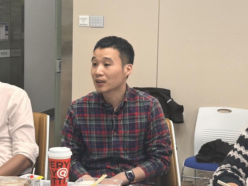新闻学系的周呈思老师,目前担任2024级大类1班的班级导师。他在分享时反复提及“实践”的重要性。周老师在设计课程提纲时,一直秉持实践比例不低于整体课程比例的三分之一。围绕媒体业界真实情境、紧密贴合现实新闻事件,举行模拟媒体采前会/编前会、模拟突发事件通讯社策划会、模拟融合新闻采编实践及其他仿真课程实践活动,受到学生们的欢迎和好评。