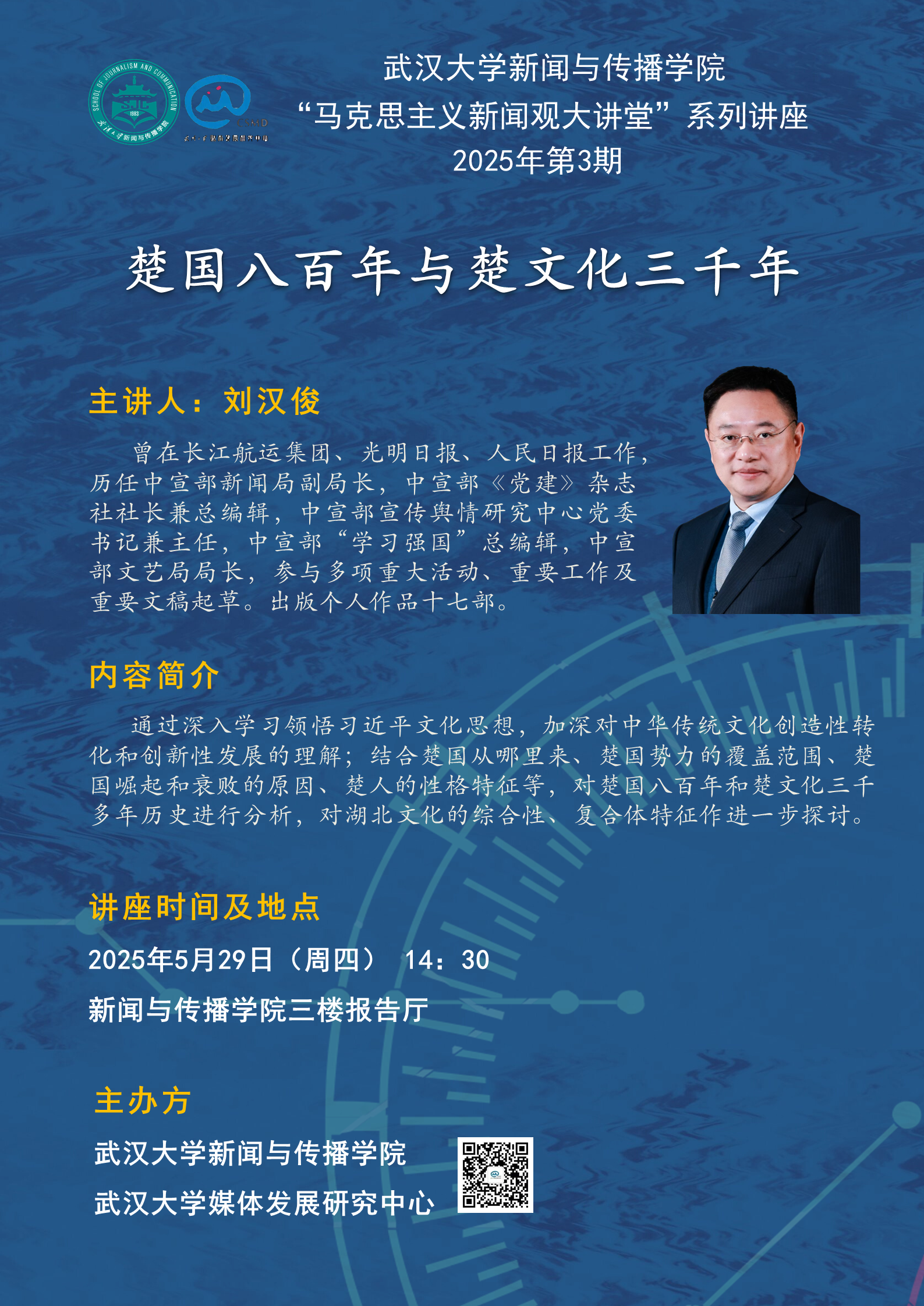 通过深入学习领悟习近平文化思想,加深对中华传统文化创造性转化和创新性发展的理解;结合楚国从哪里来、楚国势力的覆盖范围、楚国崛起和衰败的原因、楚人的性格特征等,对楚国八百年和楚文化三千多年历史进行分析,对湖北文化的综合性、复合体特征作进一步探讨。