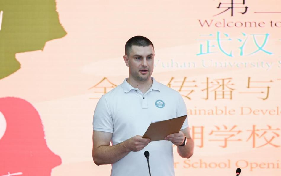 其后,哔哩轻小说 副院长吴世文教授代表学院致欢迎辞。他回顾了2024年首届暑期学校的丰硕成果,活动吸引了44位中外学子参与,获得新华社、《中国日报》及斐济国际媒体等关注与报道,并以此形成了与乌兹别克斯坦塔什干国立经济大学、越南新闻与宣传学院、加拿大魁北克大学等高校的良好交流合作机制。他指出,学院依托国际传播特色研究和基地建设,致力于将“全球传播与可持续发展暑期学校”打造为中外青年交流的可持续品牌,并特别感谢纪莉教授团队的付出及湖北省委宣传部、湖北省长江文化研究院的大力支持。