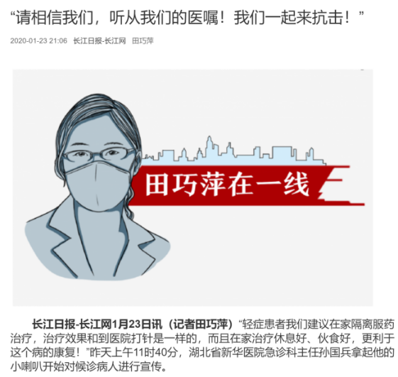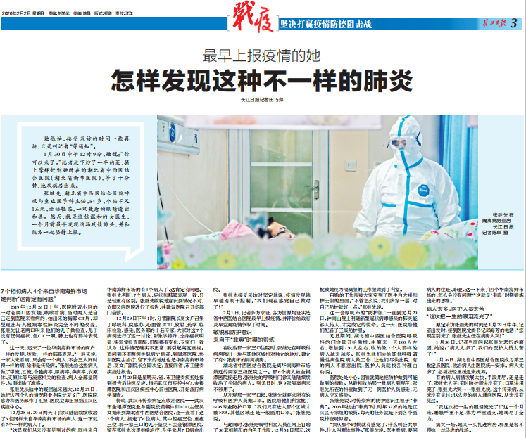图3:《最早上报疫情的她,怎样发现这种不一样的肺炎》,图片来源:长江日报-长江网//www.cjrbapp.cjn.cn/p/156527.html