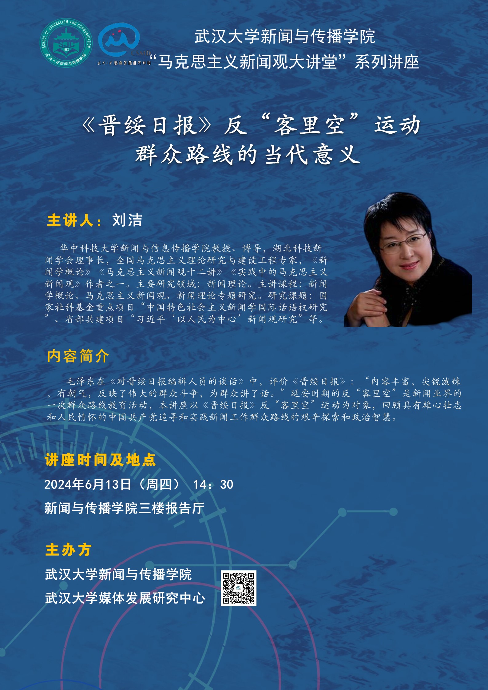 毛泽东在《对晋绥日报编辑人员的谈话》中,评价《晋绥日报》:“内容丰富,尖锐泼辣,有朝气,反映了伟大的群众斗争,为群众讲了话。”延安时期的反“客里空”是新闻业界的一次群众路线教育活动,本讲座以《晋绥日报》反“客里空”运动为对象,回顾具有雄心壮志和人民情怀的中国共产党追寻和实践新闻工作群众路线的艰辛探索和政治智慧。