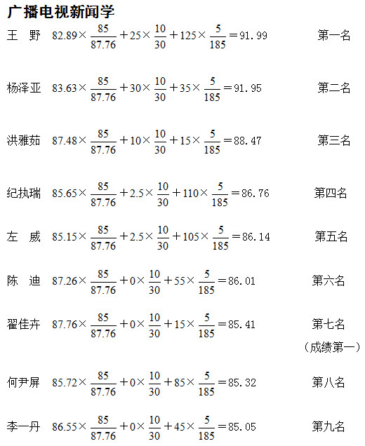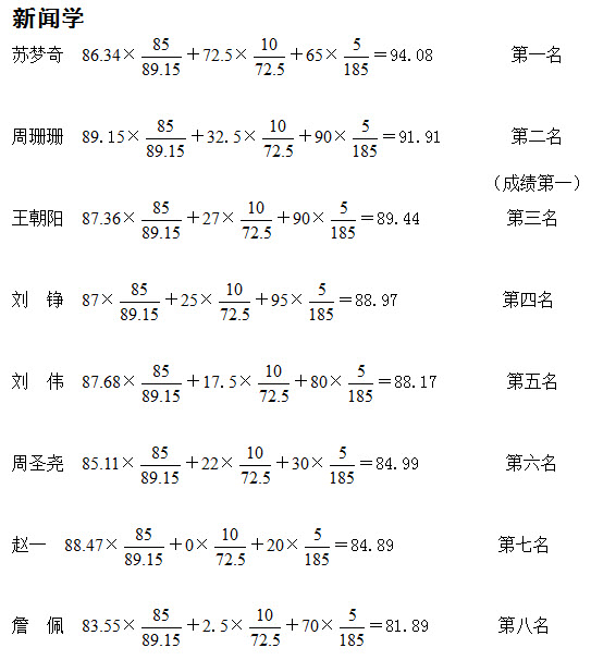 新闻与传播学院2014年推荐免试研究生排名公示