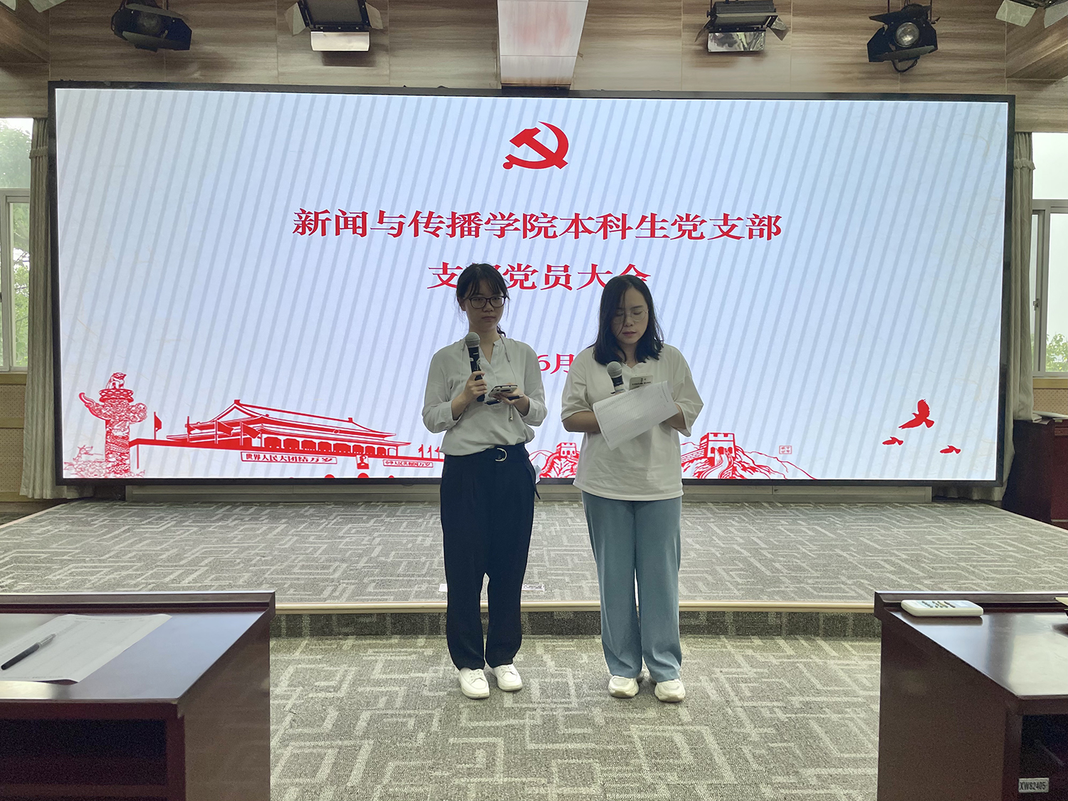 6月10日下午,新闻与传播学院本科生党支部党员大会在三楼报告厅举行,支部书记曾文鹏同志、支部宣传委员钟焯同志、支部监察委员余文嘉同志等63名党员参加了大会,其中正式党员18名。
