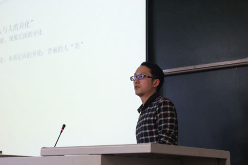 报告会中,周可老师以深入浅出的方式,全面回顾了《1844年经济学哲学手稿》(以下简称手稿)的主要内容。辅以生动的故事,周可老师娓娓道来马克思在手稿写作时的生活经历。为了让同学们获得情感上的共鸣,他介绍了马克思担任《莱茵报》主编时的颇多趣事。在手稿中,异化劳动理论是理解的重点与难点部分。结合富士康科技集团的经典案例,周可老师将“劳动产品对劳动者的异化、劳动本身对劳动者的异化、人的类本质对人的异化、人对人的异化”这四个方面紧密地串联起来,进行了深度阐释。在讲解法兰福克学派的文化批判理论时,周老师分析了法兰克福学派学者对文化产业的辩证思考,并提到了《娱乐至死》,触发了同学们对于当下日常生活过于娱乐化的思考。